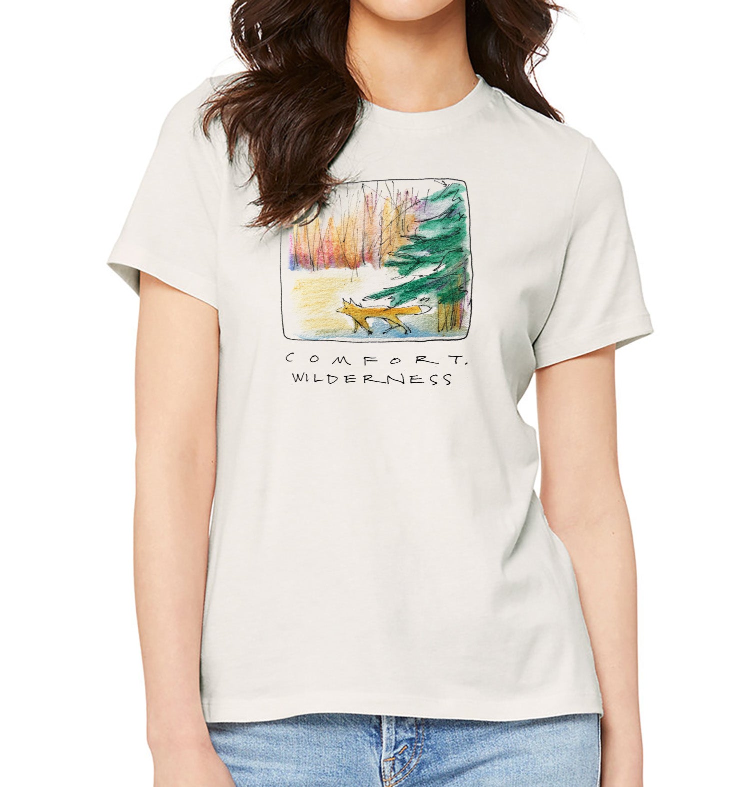 Betsy Bowen creates designs that show the life force and beauty of wildlife and wild, natural places. She shows animals where they live in balance with nature. She gets comfort and hope from noticing the creatures and the wild places. We hope you will get joy and hope from her artwork on shirts.